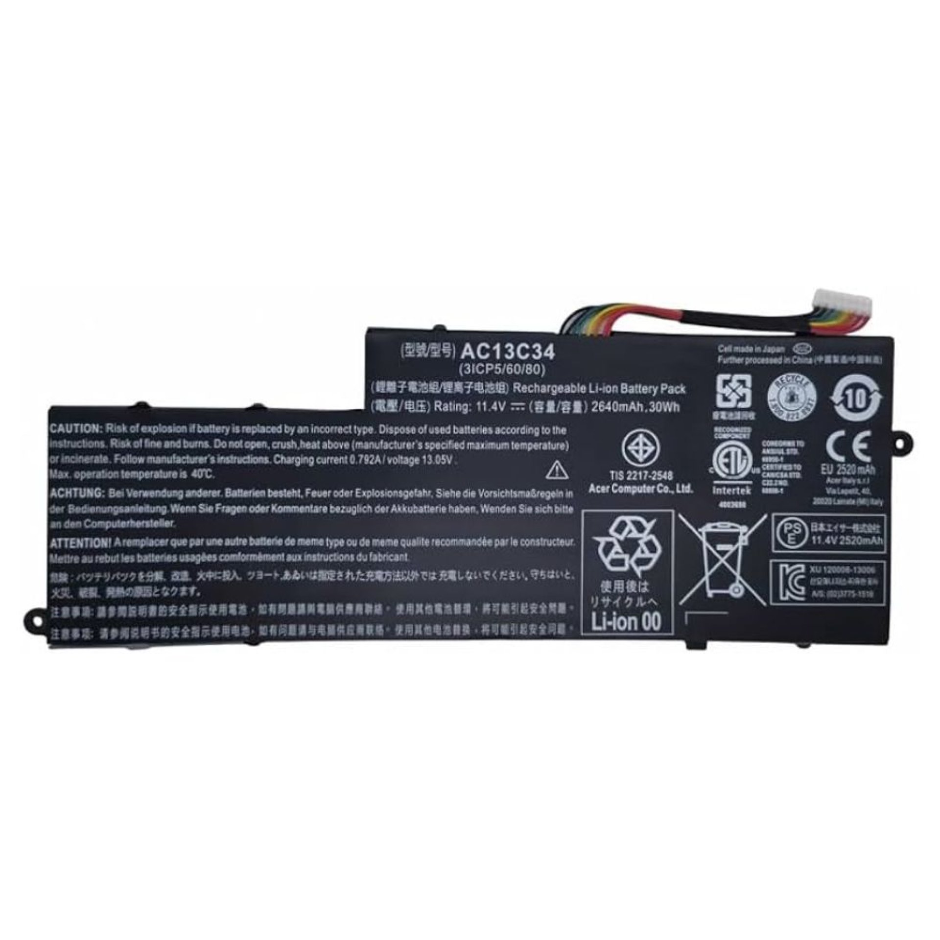 Acer Aspire V3-111P Series 11.4V 2640mAh 30Wh Original Battery Safety Protection Technologies