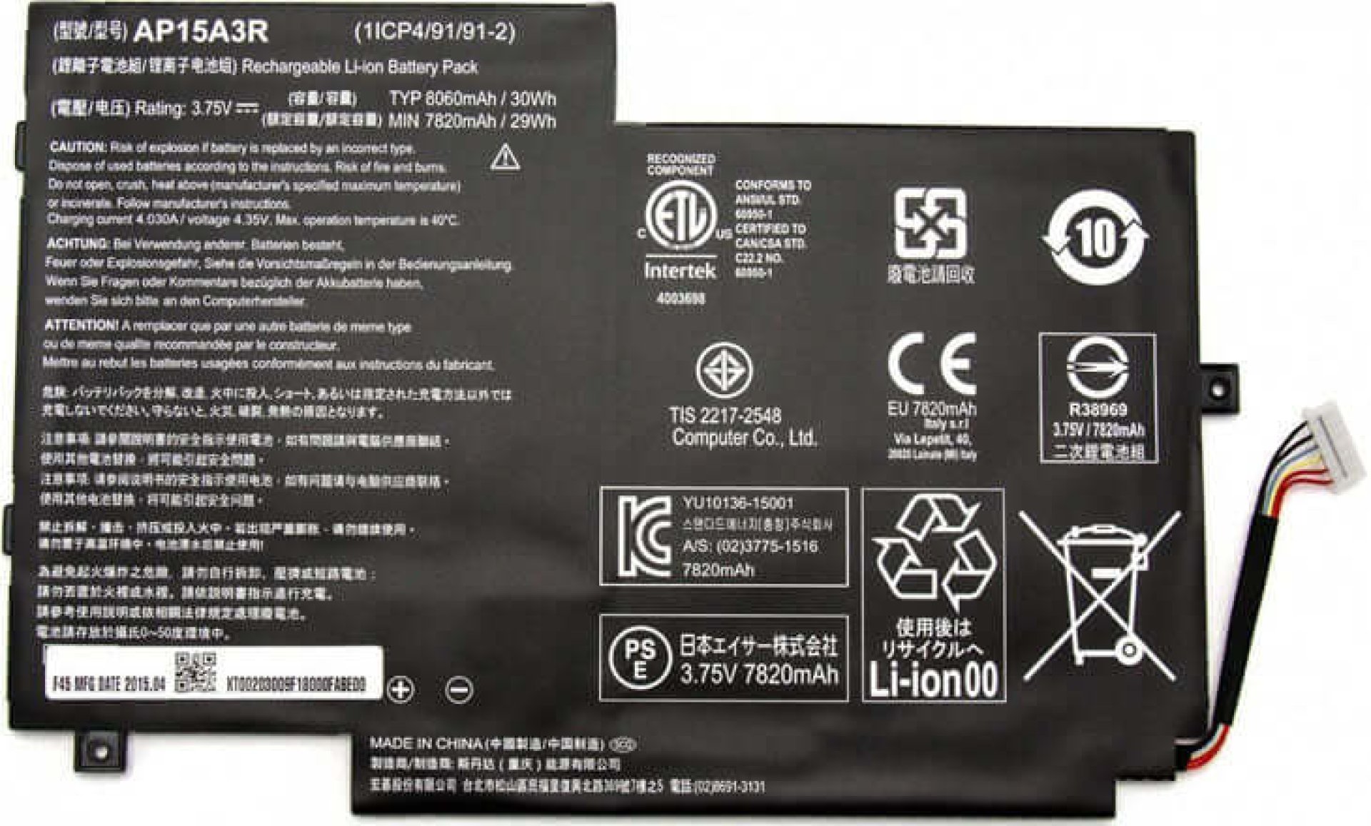 - Capacity: 30Wh (8060mAh)