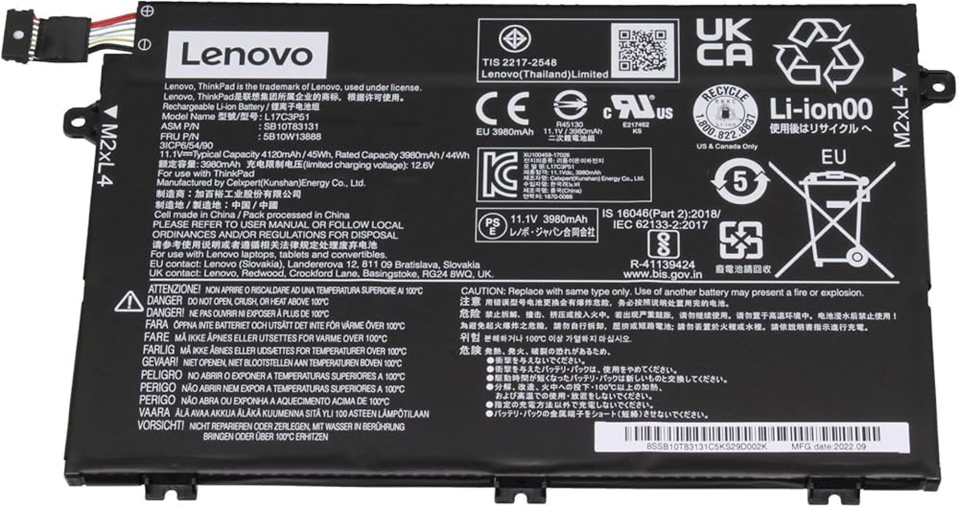 Lenovo ThinkPad E580 E585 45Wh Battery Safety Protection Technologies