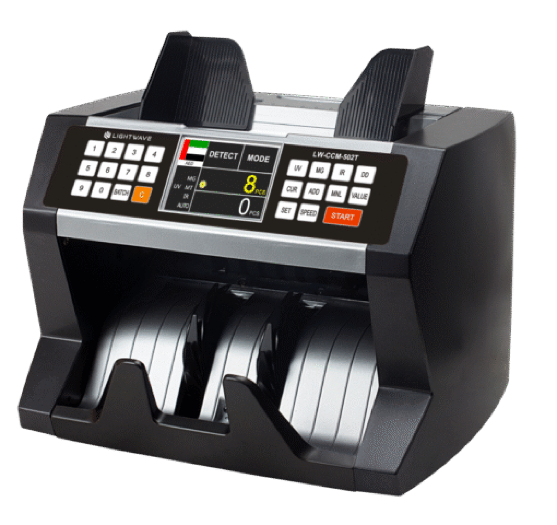 Light Wave LW-CCM-502T detects fake notes with UV, MG, and IR technology