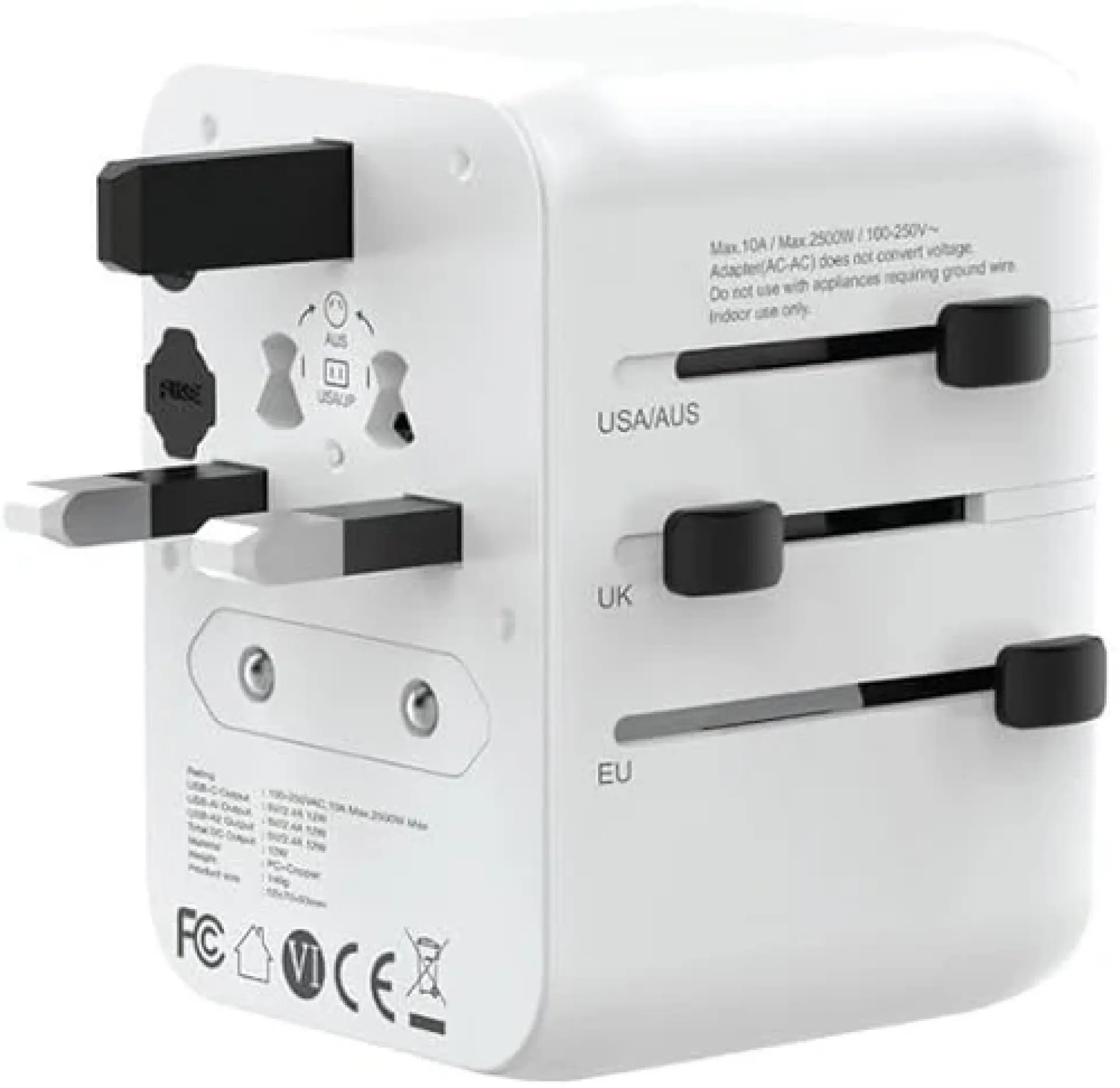 | Plug Types | Supports US, UK, EU, AU outlets |